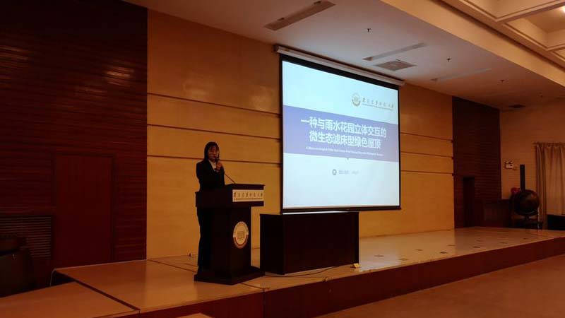 陈梓玉所在团队在此次竞赛中荣获一等奖,她讲述团队从对作品的构思、对作品的设计经历了从理想到实践的一个巨大的转变,这是一个艰难的过程,也是一个很磨练心智的过程。理想总是会经历现实的考验,她印象最深的是在设计绿色屋顶单体模块的时候,和老师交流的过程中,他们相互之间在沟通上存在巨大的困难,后来通过不断查阅资料,不断和老师一起沟通构想,才将作品大概的框架构思了出来,也在原有框架上有所创新,这个过程很艰难,但是很有价值,理想和实践往往就需要多想那么一点,便能达到意想不到的效果。从校赛的答辩到省赛的答辩,每个队员都兢兢业业,充分准备答辩稿,就连答辩的前一个小时,还在改稿,只为能在答辩现场发挥最好的状态。